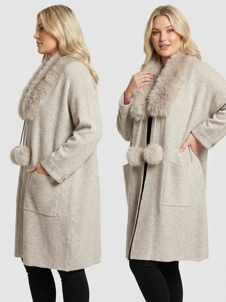 Das absolute Highlight ist der üppige, super flauschige Kunstfellkragen mit den verspielten Bommeln, der sofort für einen Wow-Effekt sorgt. Das Beste daran: Er ist komplett abnehmbar! So zauberst du im Handumdrehen aus einem glamourösen Winterteil eine schlichte, edle Feinstrickjacke für wärmere Tage oder schlichtere Outfits.