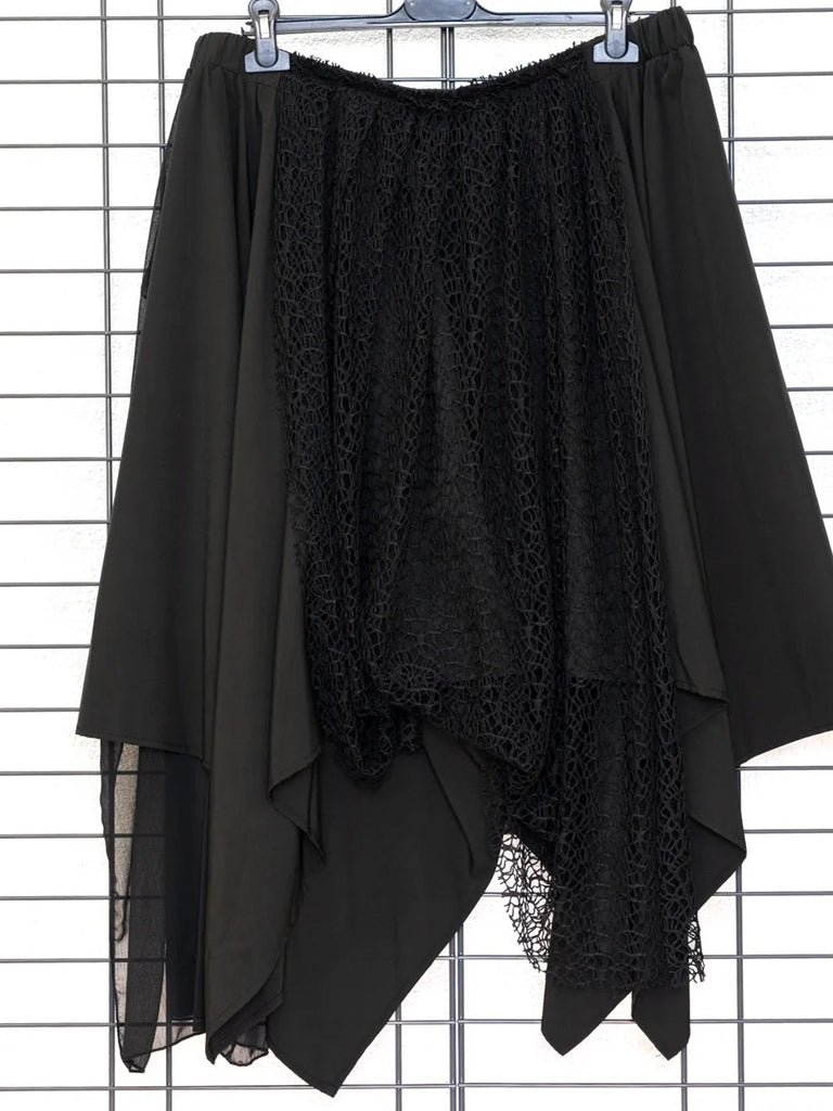 Der weite Schnitt und der bequeme Gummibund sorgen für maximalen Komfort – nichts zwickt oder drückt. Der Materialmix aus Baumwolle und Mikrofaser fühlt sich wunderbar weich an und fällt locker fließend. Durch das Netz-Overlay wirkt der Rock modern, feminin und leicht verspielt.