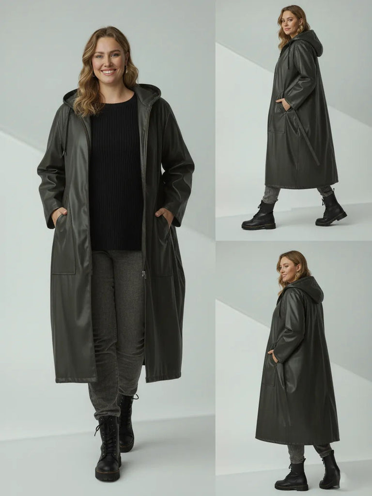 Diese Moonshine Jacke aus Lederimitat ist ein absolutes Must-have für alle Curvys, die rockige, aber edle Styles lieben! Der weiche Kunstleder-Look in Khaki macht die Jacke zu einem echten Statement-Piece – perfekt für den Alltag, City-Looks oder coole Abend-Styles.
