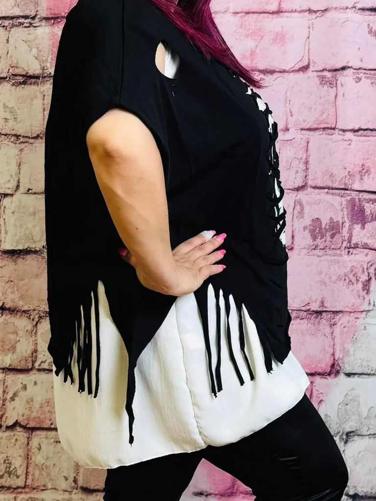 - Seitliches Fransendekor für den ultimativen Rockchic