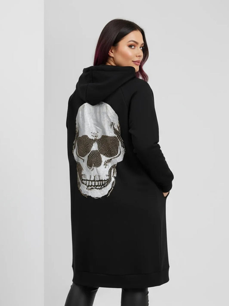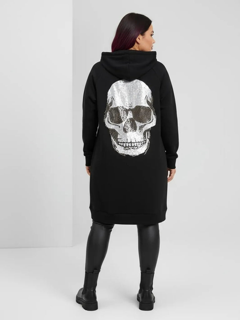 Hoodielook Sweatjacke mit Skull – Curvy Mode in Großen Größen