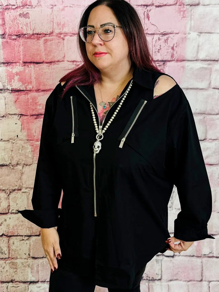 Bluse mit Cutouts & Skull – Rockige Curvy Mode in Großen Größen